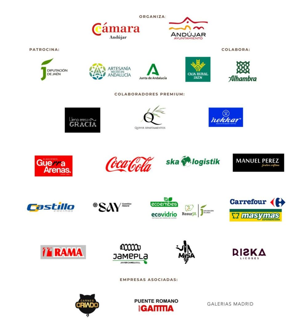 La Cámara de Comercio, Industria y Servicios de Andújar, cuenta con el apoyo económico del Ayuntamiento de Andújar, de la Diputación Provincial de Jaén, Artesanía de la Consejería de Empleo, Empresa y Trabajo Autónomo de la Junta de Andalucía, Caja Rural de Jaén y Cervezas Alhambra.